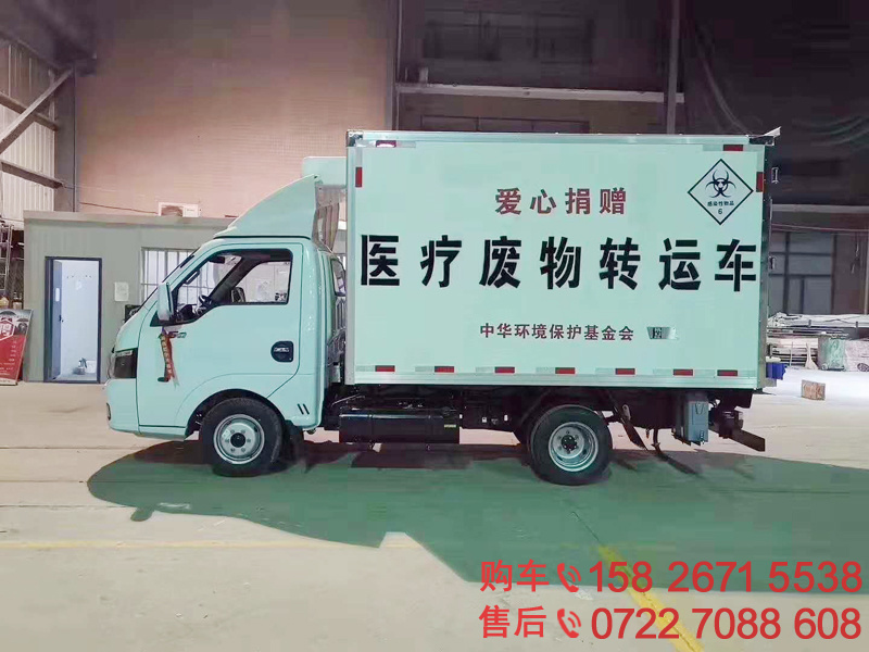 疗废物转运车:在常规冷藏车基础上,厢体内部必须采用全密封不锈钢制造,厢体内部加装一道不锈钢密封内掀门,加装杀毒喷雾装置,加装紫外线杀毒装置,厢体尾部加装废液溢漏箱!